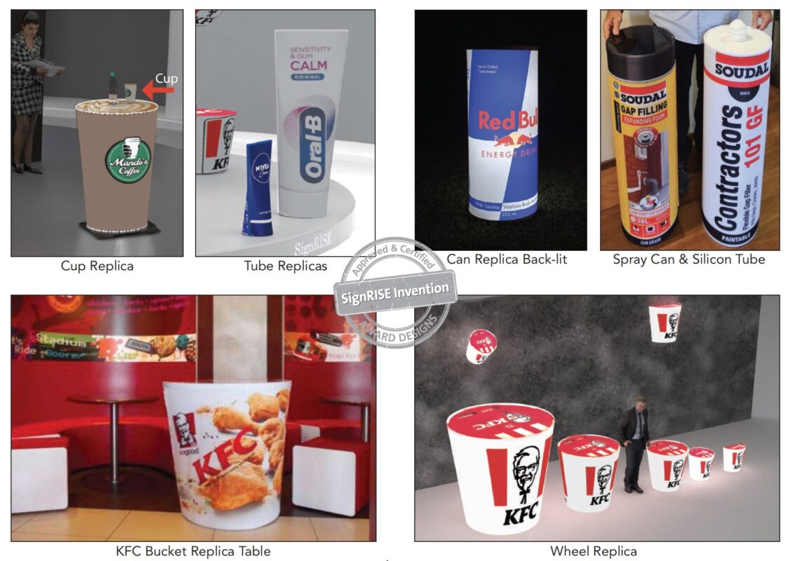 We create hyper-realistic product replicas ranging from 600mm to 2.5m, capturing every detail in 360° visuals with stunning backlighting.